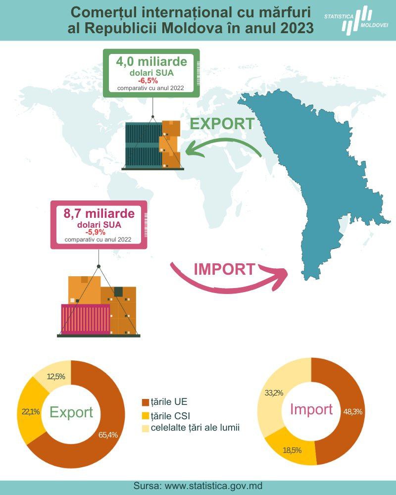 В Молдове зафиксировано значительное снижение экспорта и импорта в прошлом году.