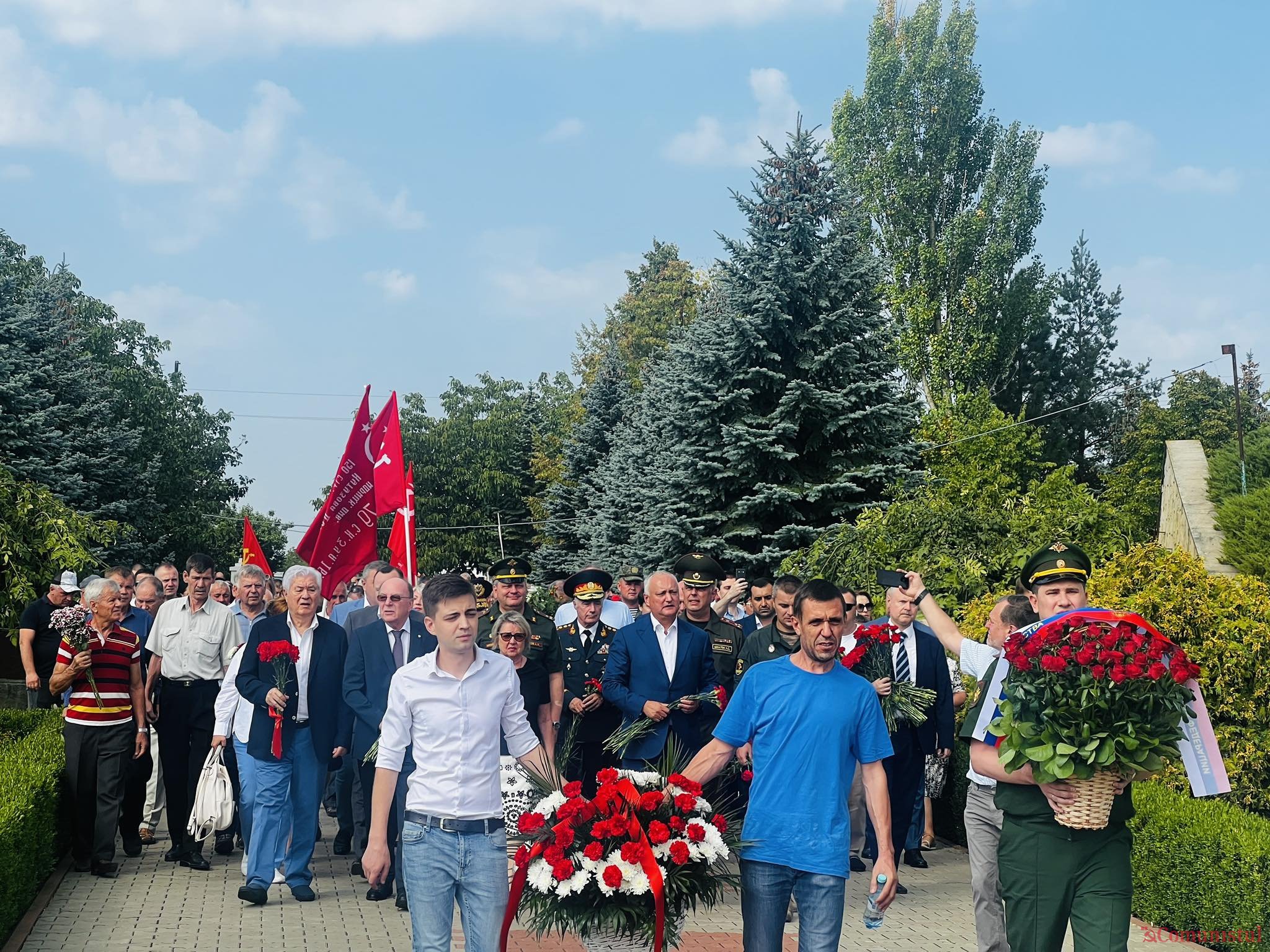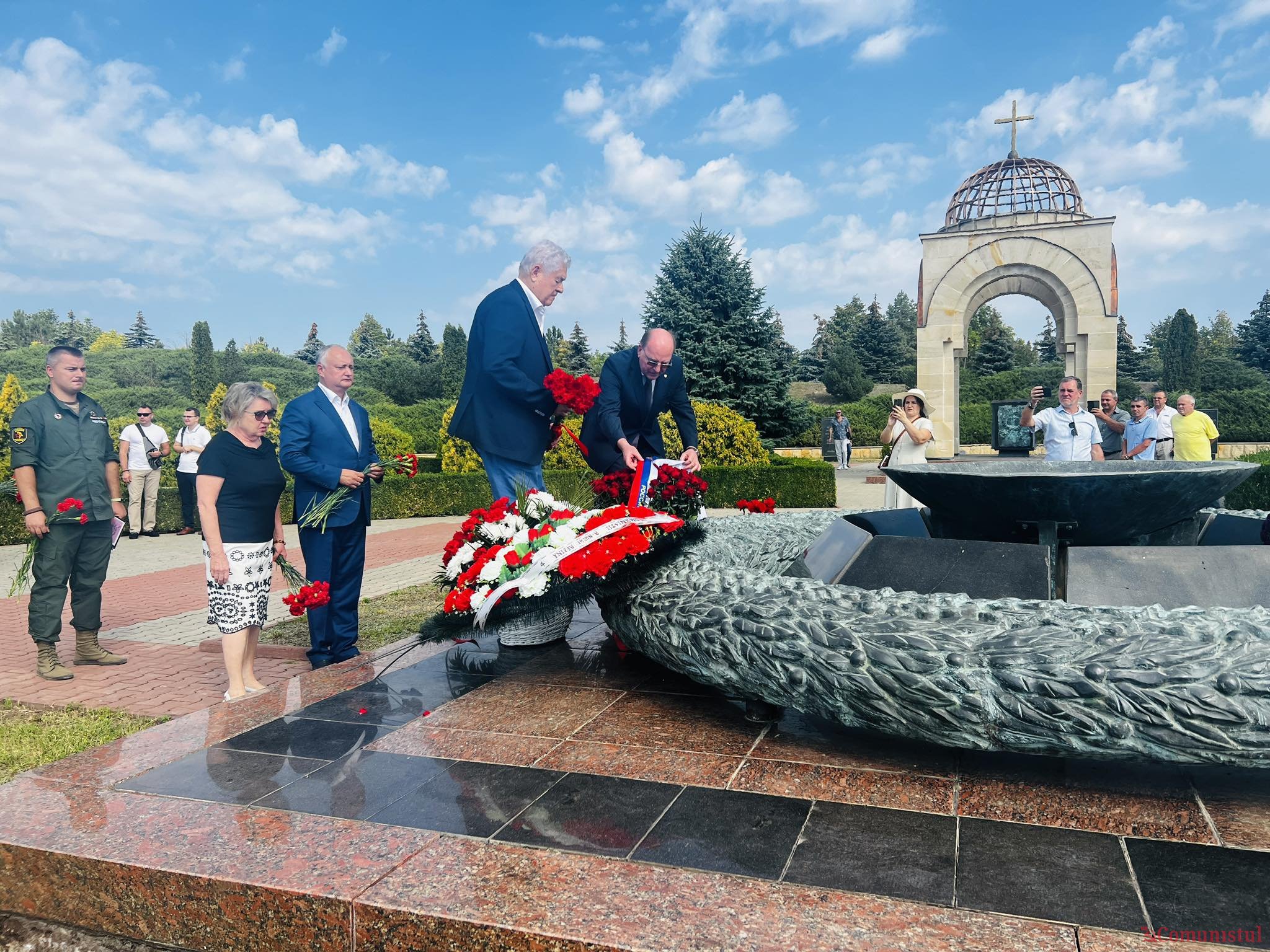 Сегодня, 24 августа, в 10:00 утра было проведено возложение цветов к Вечному Огню на мемориале «Шерпенский плацдарм» и к братским могилам воинов, погибших, освобождая Молдову, останки которых покоятся на мемориальном воинском кладбище в Шерпенах.
