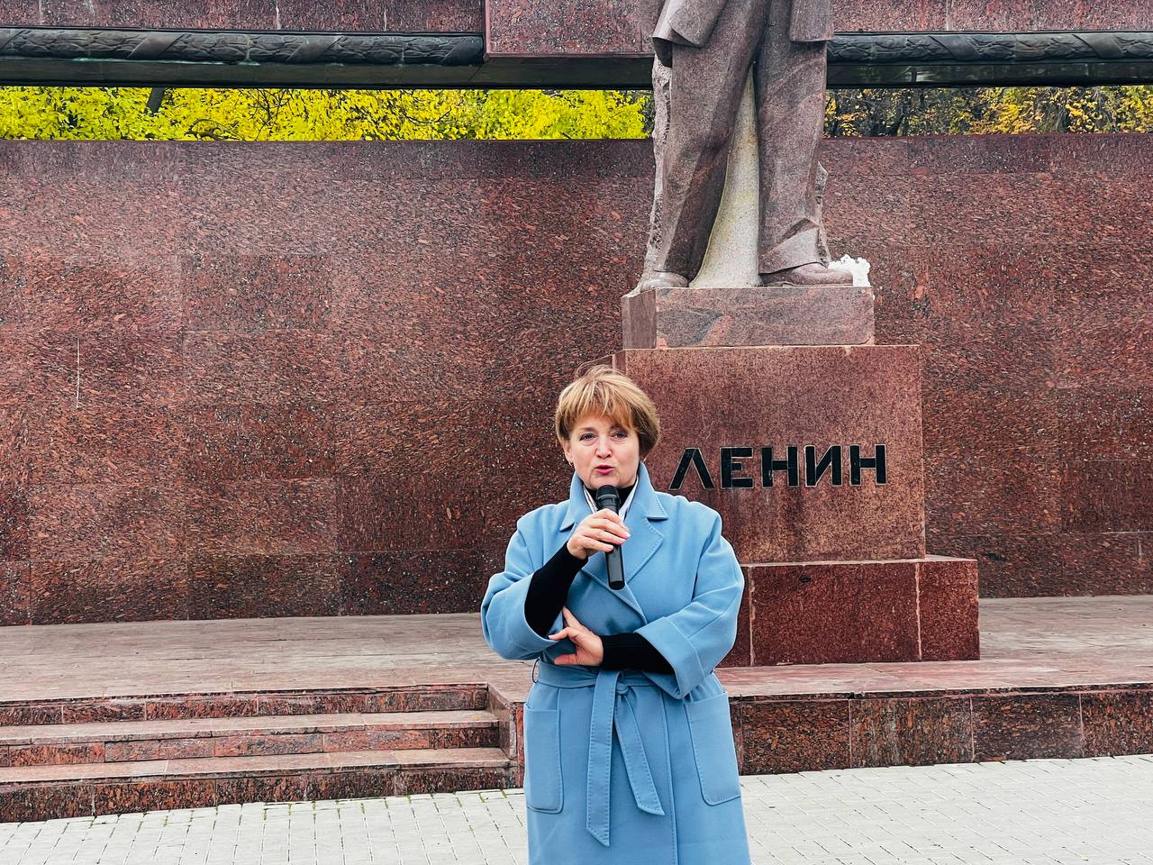 Участники митинга возложили цветы к памятнику Владимиру Ильичу Ленину.
