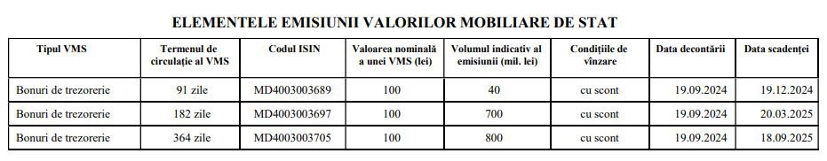 Министерство финансов Молдовы предлагает в середине сентября разместить государственные ценные бумаги на сумму 1 540 000 000 леев.